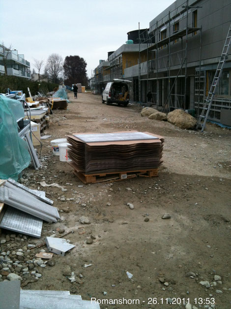 Zwei Wochen zuvor hatte ich die Herren Schlatter, Bergmann und Gschwend auf der Baustelle getroffen. Zu meinen Bedenken zum Einzugstermin meinte Schlatter lakonisch: Seien Sie nicht so negativ. In den nächsten 2 Wochen kann noch vieles passieren...